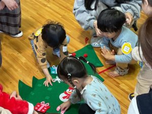 クリスマスソングに合わせて、たくさん体を動かして遊びました。